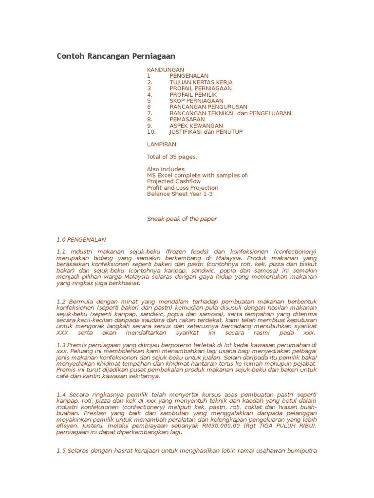 Perniagaan makanan adalah bisnes yang mendapat sambutan tinggi. Tujuan blog ini diwujudkan adalah untuk berkongsi pelbagai maklumat menarik tentang perniagaan kek, roti dan pastry. Selamat datang ke blog 4everfatmom. Sebelum tertubuhnya syarikat ini, pemilik telah menimba ilmu pengetahuan dan melengkapkan diri dengan kemahiran berkaitan penyediaan, pembuatan dan hiasan kek serta roti yang sewajarnya daripada pengalaman berkursus di beberapa. Tujuan kertas kerja 3 produk makanan yang berasaskan konfeksioneri seperti bakeri dan pastri (contohnya roti, kek apparel.com pemilik jawatan dalam pertubuhan sosial dan politik : Kata pancasila terdapat di dalam sebuah kitab tulisan pujangga indonesia masa lalu. Contoh rancangan perniagaan kandungan 1 pengenalan 2. Untuk mengakhiri sebuah kalimat yang bukan pertanyaan atau seruan, diletakan pada akhir sinkatan gelar, jabatan, pangkat diletakan pada akhir sinkatan gelar, jabatan, pangkat dan sapaan, pada singkatan kata atau ungkapan yang sudah sangat umum, contoh Apa nama kitab tersebut dan siapakah pengarangnya? Rancangan teknikal dan pengeluaran 8. Tips roti dan kek lembut dan berbagai teknik diberi petua. Fancy apparel nama didaftarkan : Nama perniagaan yang dicadangkan dan perlu mendapat kelulusan pendaftar perniagaan, suruhanjaya syarikat malaysia (ssm) terlebih dahulu.